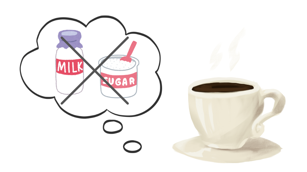 砂糖やクリープなど入れないブラックのコーヒーにしようね!