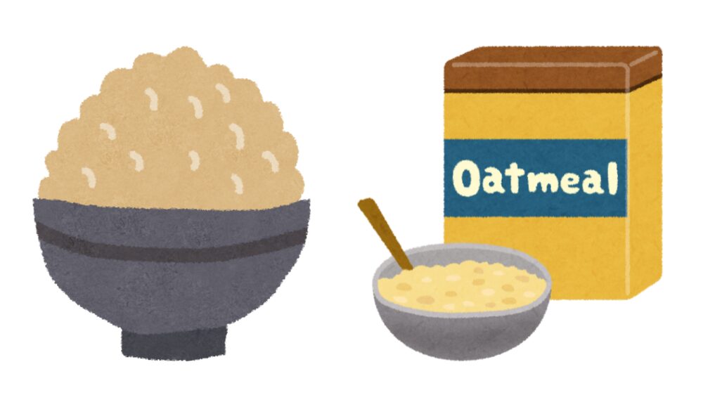- 白米→玄米、もち麦、オートミール