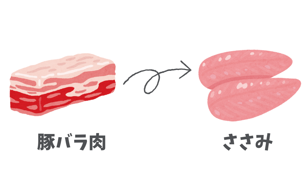 豚バラ肉などの脂質が多い肉はカロリーが高くなってしまうので注意しましょう。