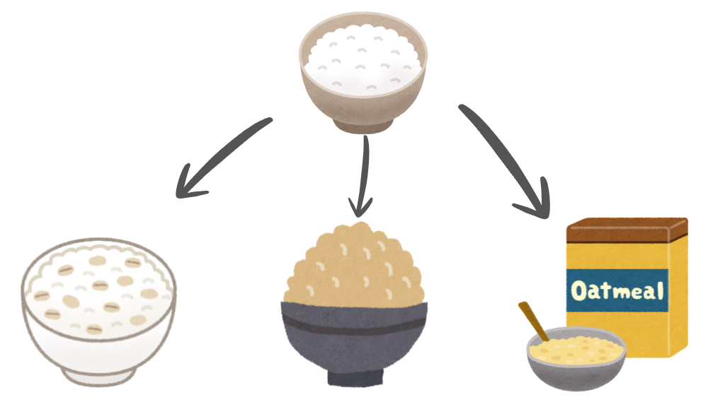 大事な糖質であるごはんは血糖値を急上昇させやすいので他の糖質に置き換えましょう
