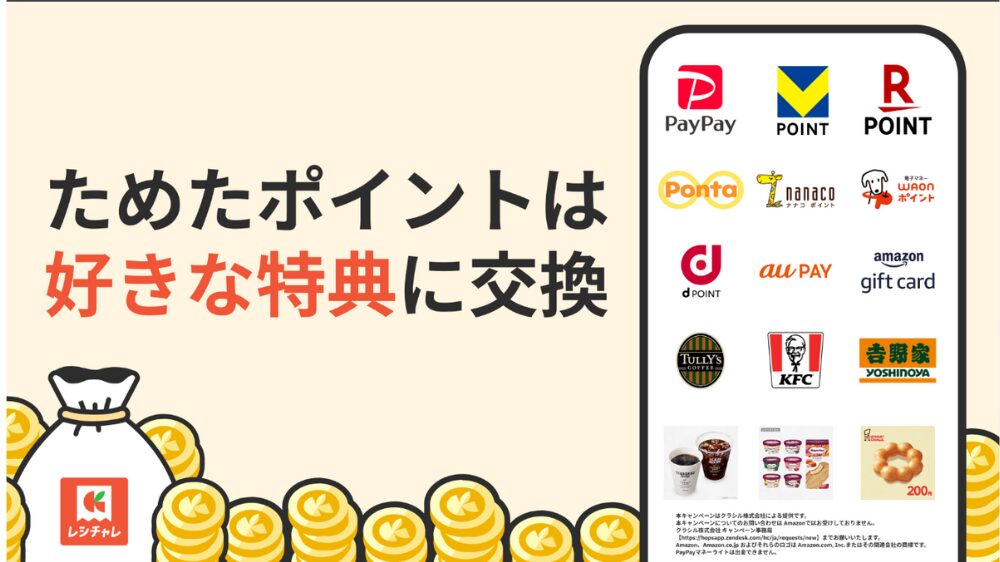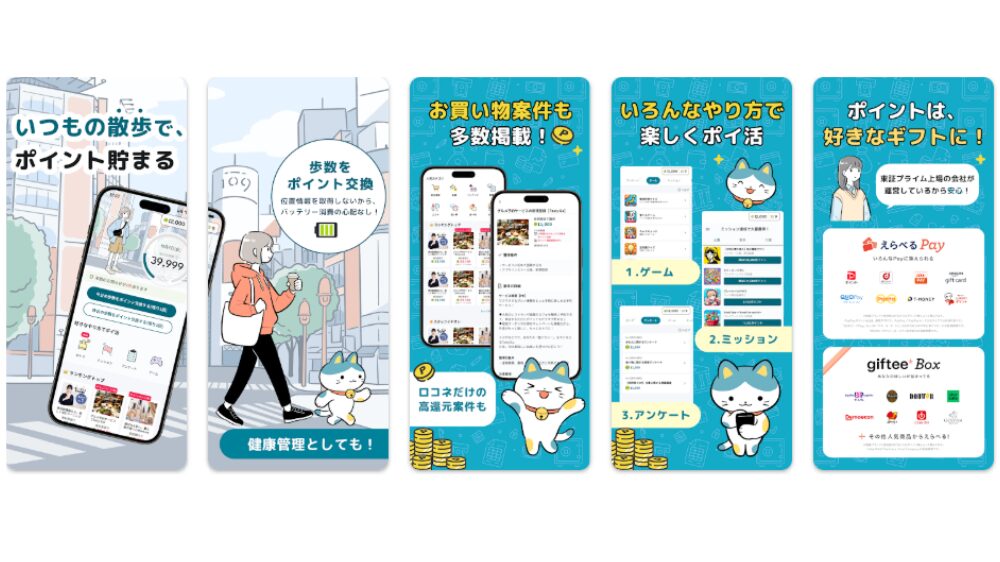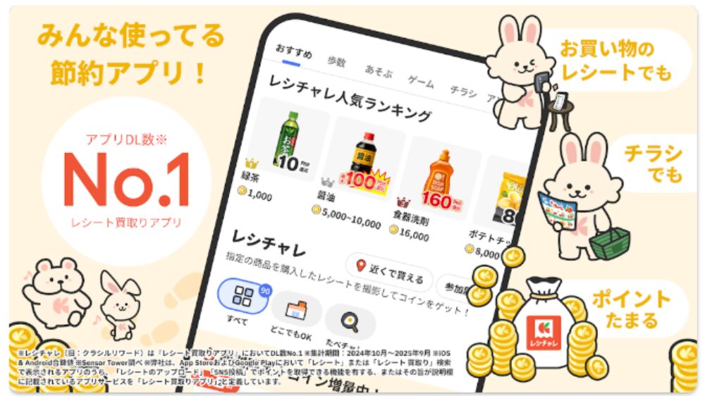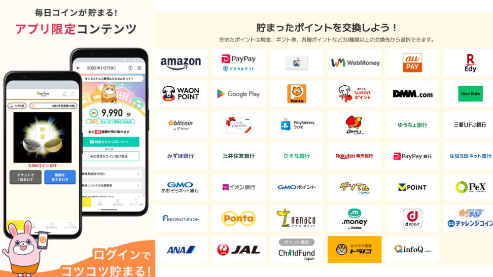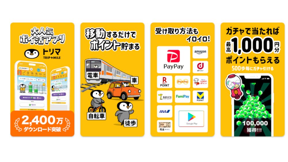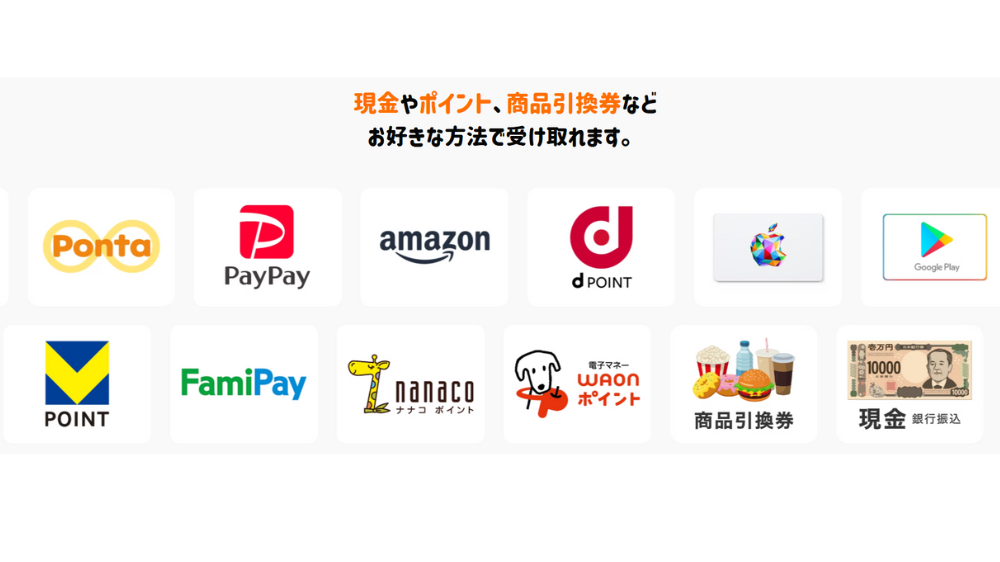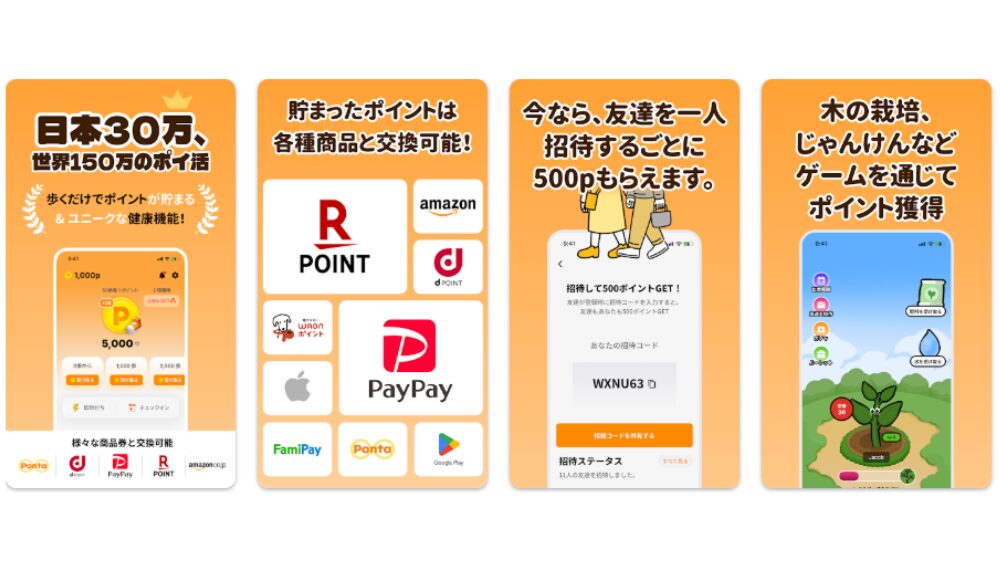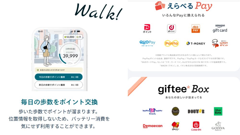 - 歩数だけでなく移動・アンケート・レシートなど貯め方いろいろ