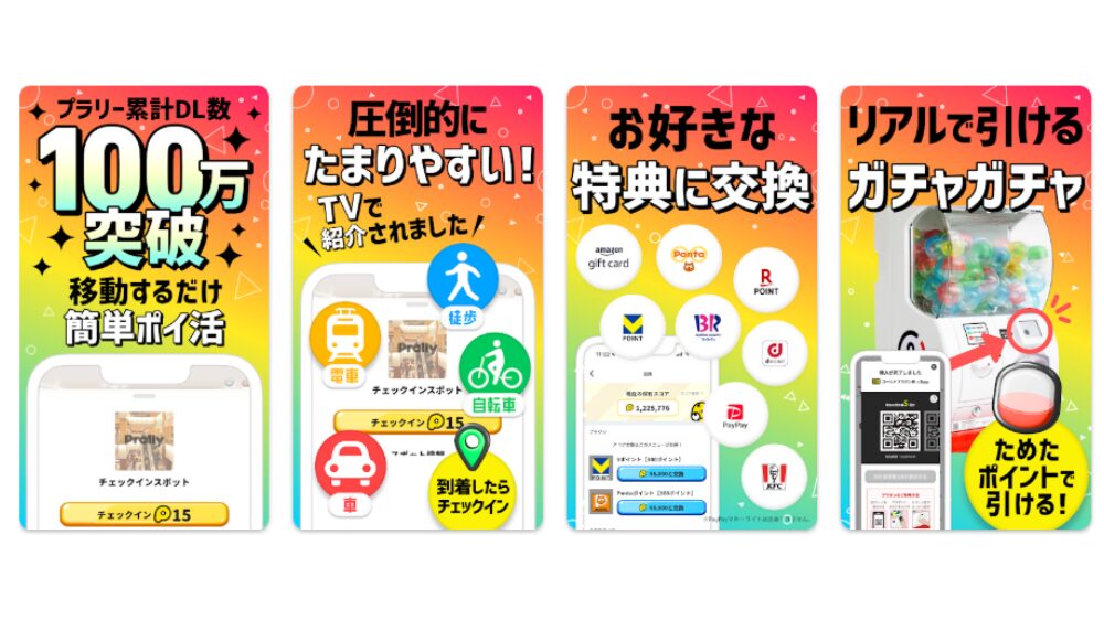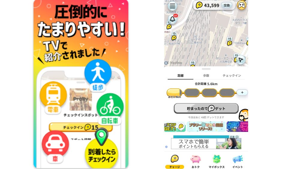 歩数や移動、チェックインなど手軽にポイントを貯められる「プラリー」。