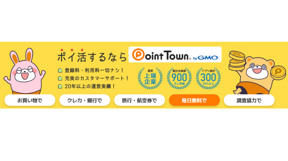 わたしが使っているポイントサイトは「ポイントインカム」をメインで使用しているためポイントタウンでは歩いて貯めるアプリとして活用しています。