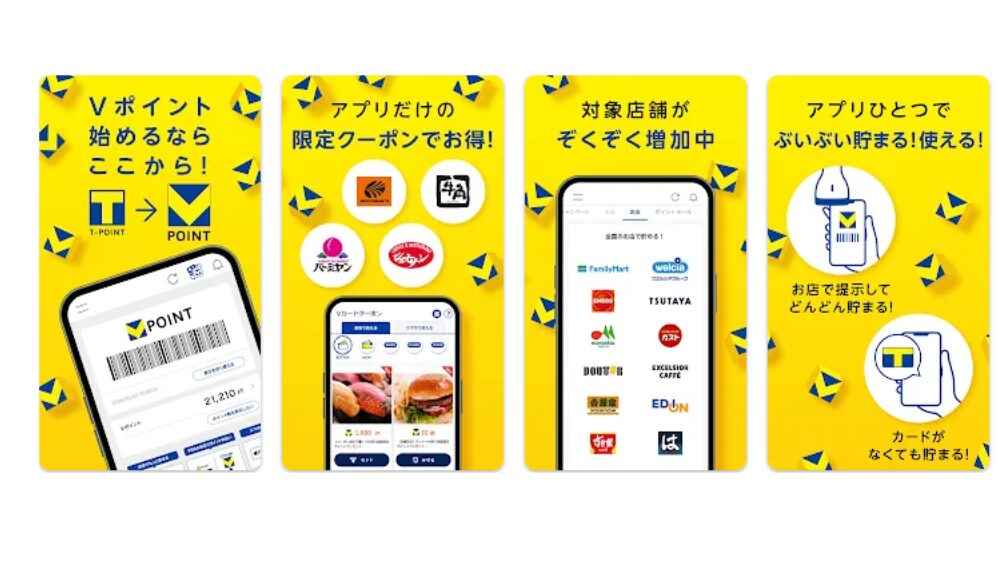 - TポイントとVポイント統合により全国で数多くのお店が対象となっている。