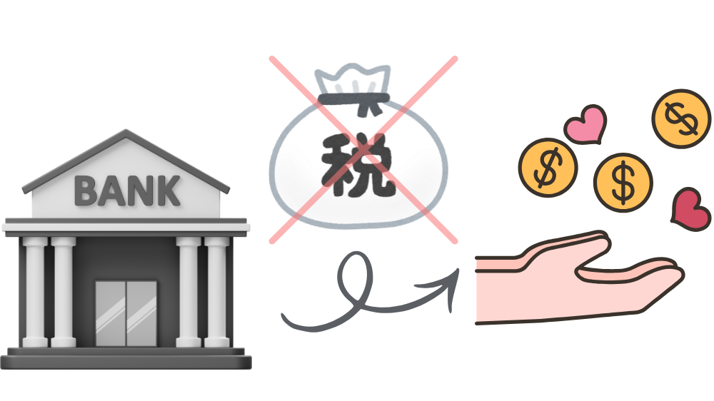 通常定期預金などに預けて、利子をもらうときは20.315%の税金が差し引かれますが、この税金が引かれなくて済むので利子をそのままもらうことが可能です。